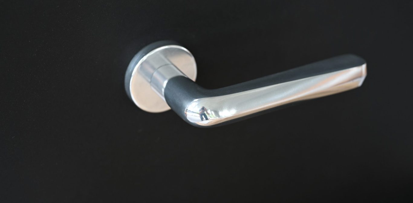 Eine Türklinke aus gegossenem Aluminium. Gestaltet nach den "vier Geboten des Greifens" von Otl Aicher - Daumenbremse, Zeigefingerkuhle, Ballenstütze und Greifvolumen, als zentrale Prinzipien für eine ergonomische Handhabe.
